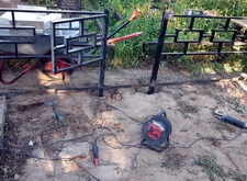 Первое, что мы сделали на могиле – уборку. Тщательно очистив место захоронения от сорной травы и прочего мусора, мы взялись за монтаж ограждения. Ножки оградки вбили в специальные ямы, а по нижней её части проварили металлический борт, служащий одновременно и ограничителем для плитки, и дополнительным каркасом, придающим жёсткость самой конструкции.