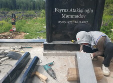 Собираем лавочку, устанавливаем её напротив надгробья. Цветник у подножья мемориальной стелы наполняем светлыми камнями. Под полукруглую арку памятника укрепляем вырезанную из гранита фигуру полумесяца.